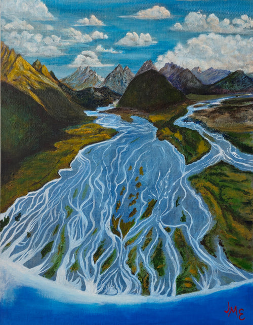 Dart River Braided River Lake Wakatipu By New Zealand Artist Joan Edridge